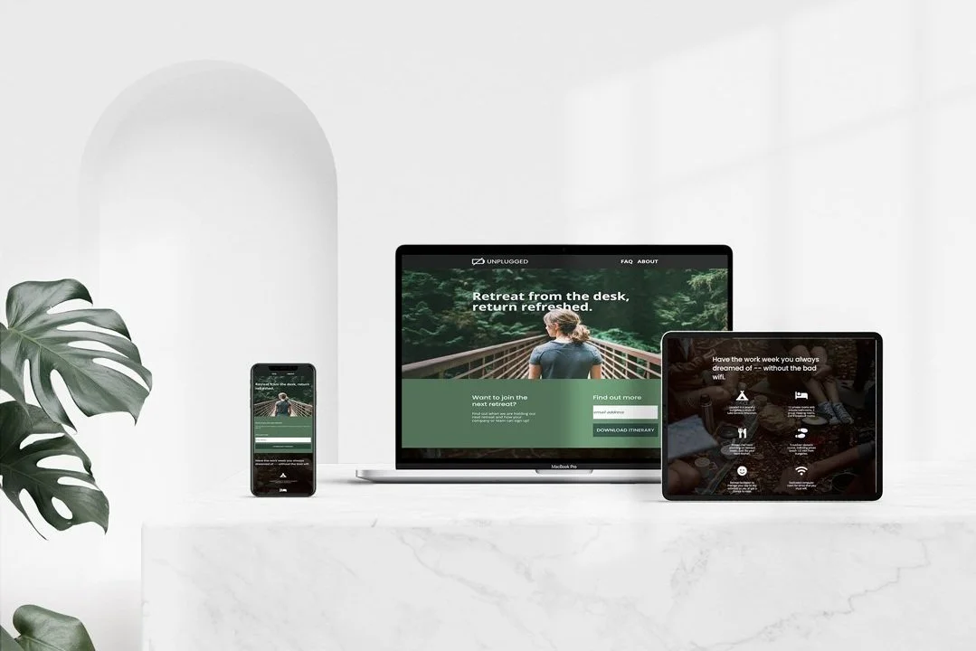 After, strategizing with Unplugged on ways to improve their work life, just like they strive to do for other people and businesses, a variety of solutions were created. In order to provide an easy way for interested, potential customers to be updated on the destination and date of their next retreats a website was designed and created with the focus on getting people to easily sign up for their newsletter and to join their community. Now, not only can potential customers easily receive emails on upcoming retreats and sign up for them, they can also receive weekly emails to help motivate them, share stories, tips, and resources.